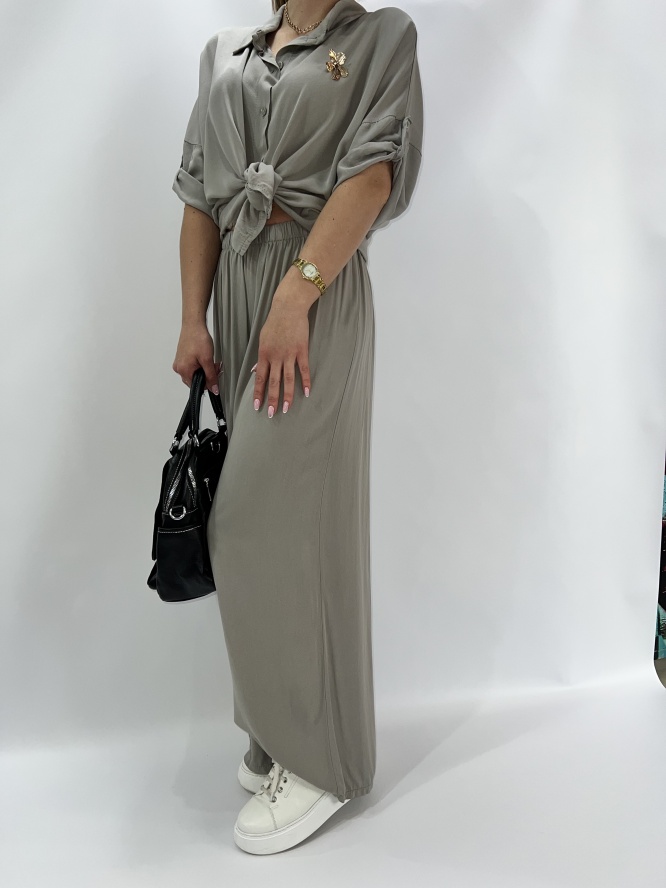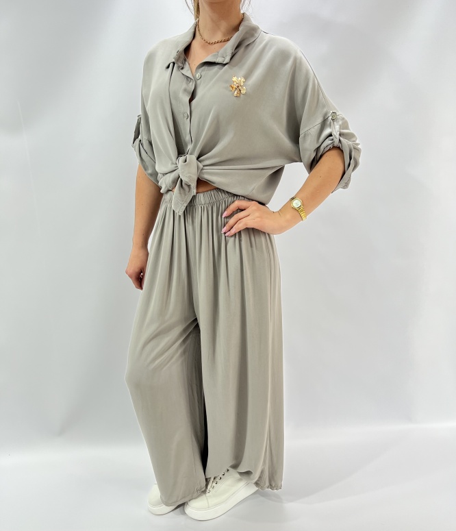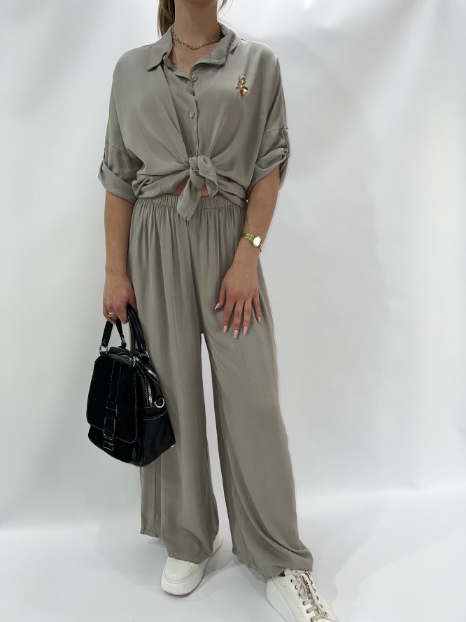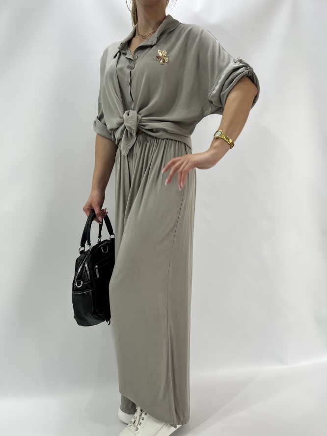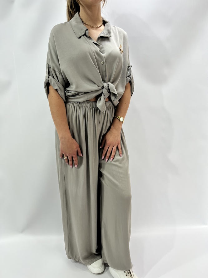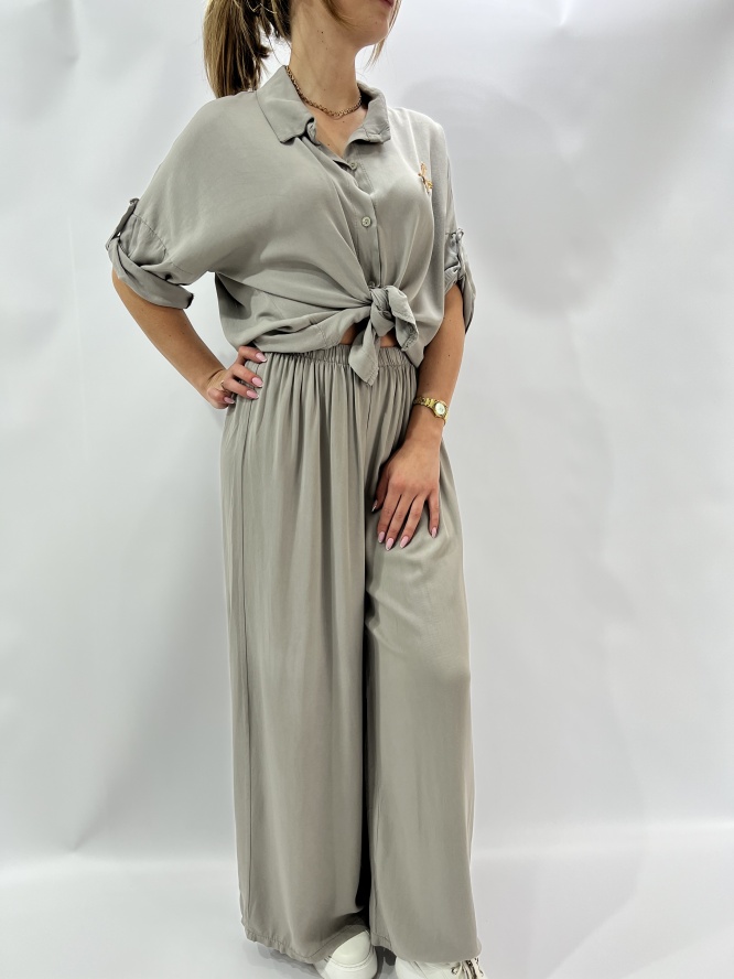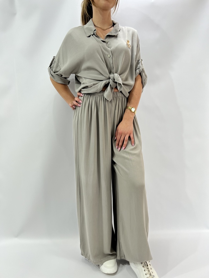 KOMPLET ELEGANCKI , KOSZULA ZAPISNANA NA GUZIKI, SPODNIE LEJĄCE DŁUGIER, SZEROKA NOGAWKA SKŁAD : 95% VICOSA 5 % ELASTAN PRODUKT WŁOSKI